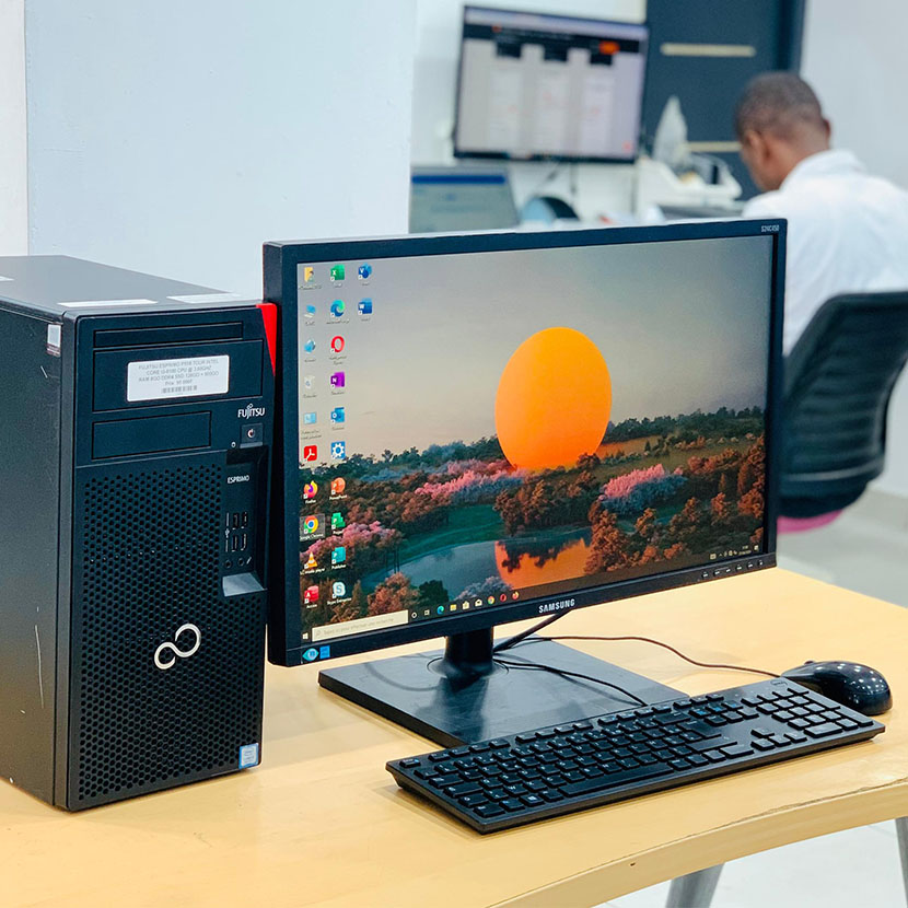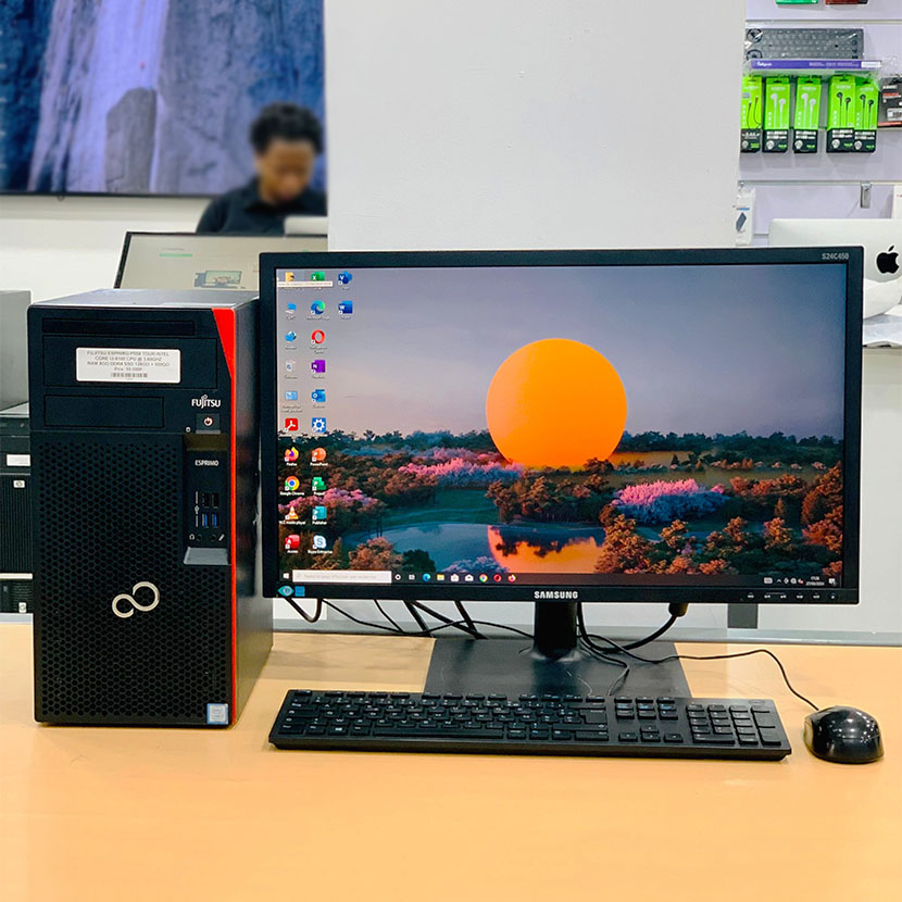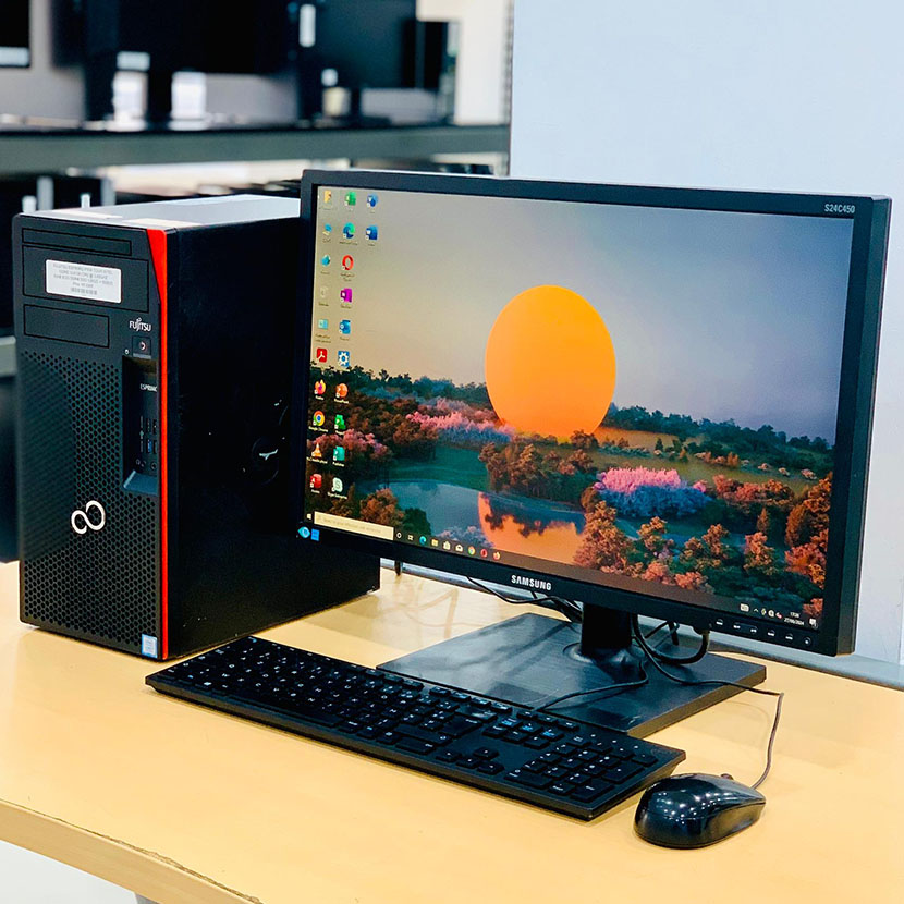 Complet Fujitsu Esprimo P558 Tour Core i3 – RAM 8Go DDR4 SSD 128Go + HDD 500Go + Écran Samsung 22″